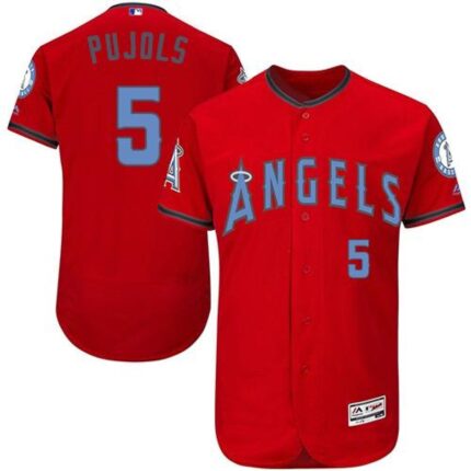 Angels of Anaheim #5 Albert Pujols Red Flexbase Authentic Collection 2016 Father’s Day Stitched MLB Jersey