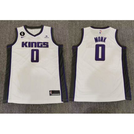 Men’s Sacramento Kings #0 Malik Monk White No.6 Patch Stitched Basketball Jersey